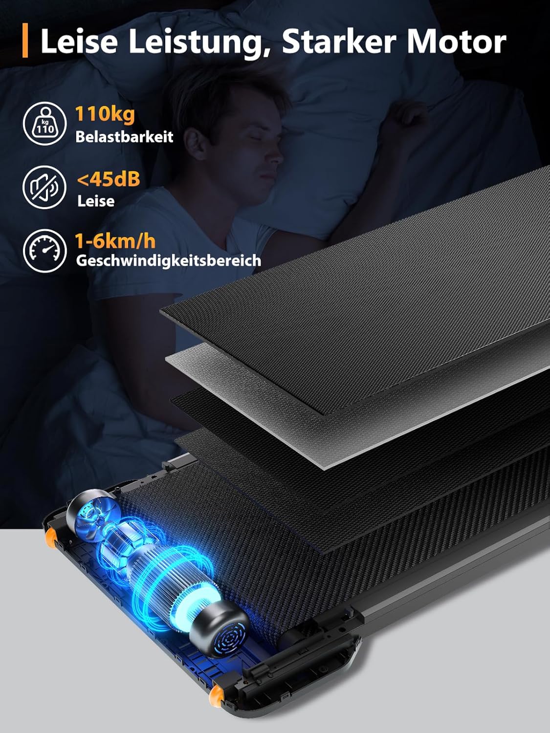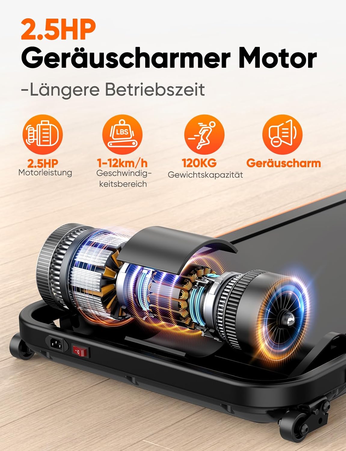 Dieses Laufband ist ideal für zuhause, mit einer leisen und kraftvollen Motorik. Es bietet eine Vielzahl von Funktionen wie die Anpassung der Geschwindigkeit und eine vibrationsfreie Lauffläche. Durch die kompakte und platzsparenden Design lässt es sich leicht unter einem Bett oder Sofa verstauen. Die Funktionen machen es zu einem optimalen Begleiter für Ihre täglichen Trainings.