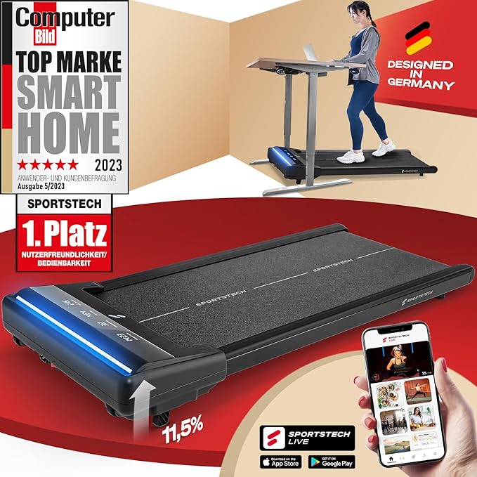 Sportstech Laufband Walking Pad fuer Zuhause kompakt